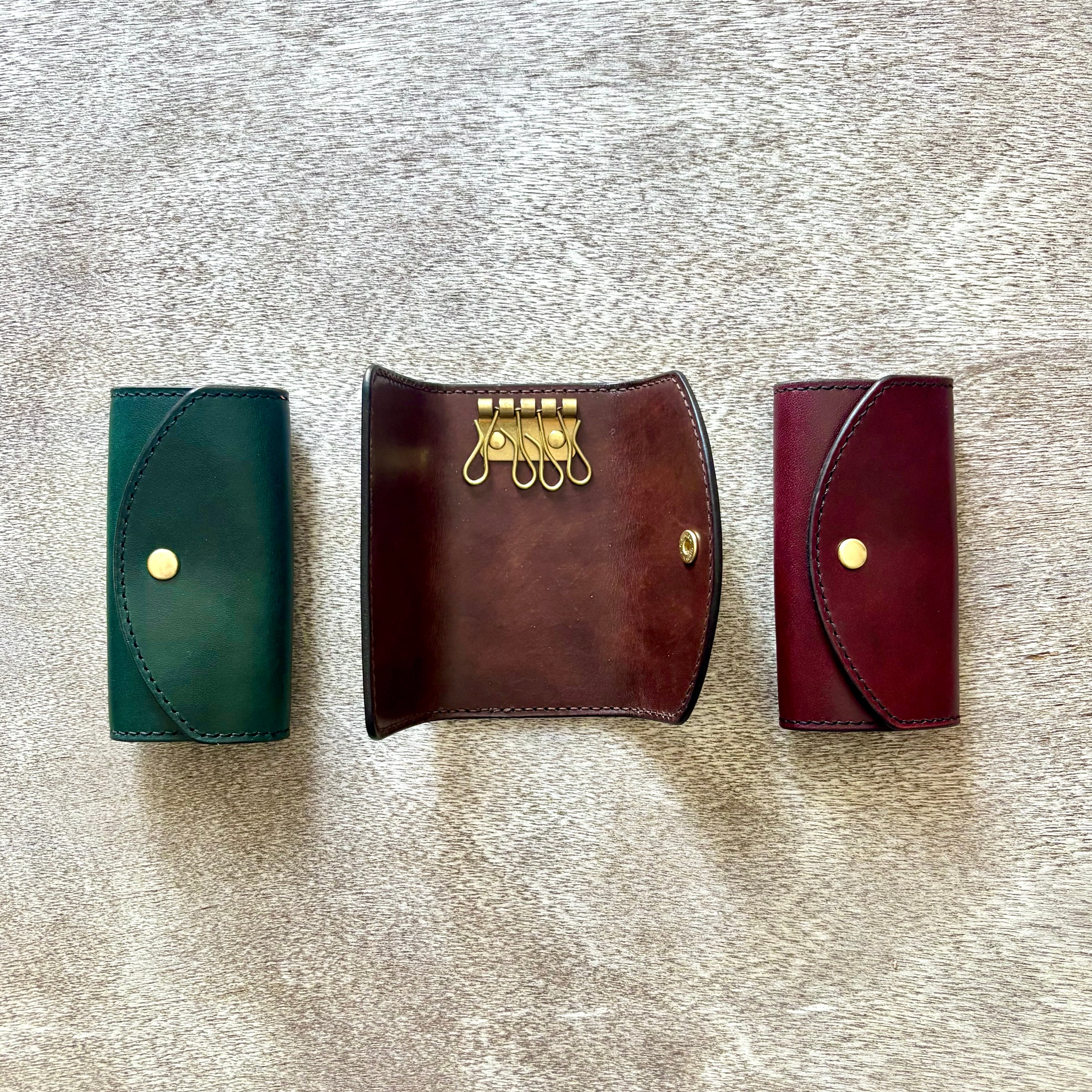 革と真鍮のクラシカルな三つ折りキーケース
