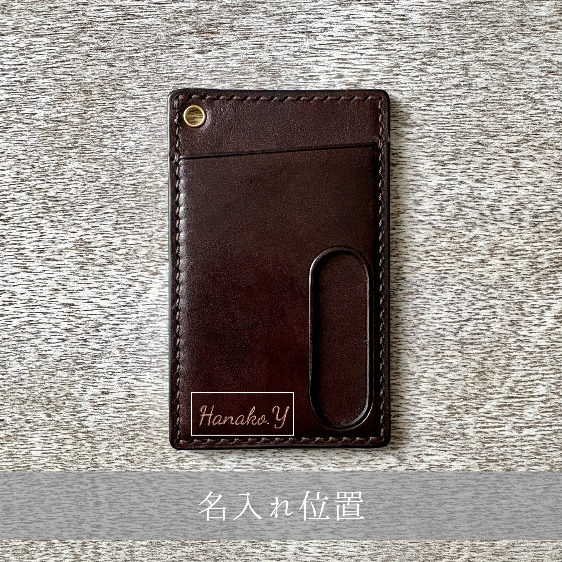 独自に調色した染料を用い、手染めで仕上げる当ブランド定番の革色「チョコ」。