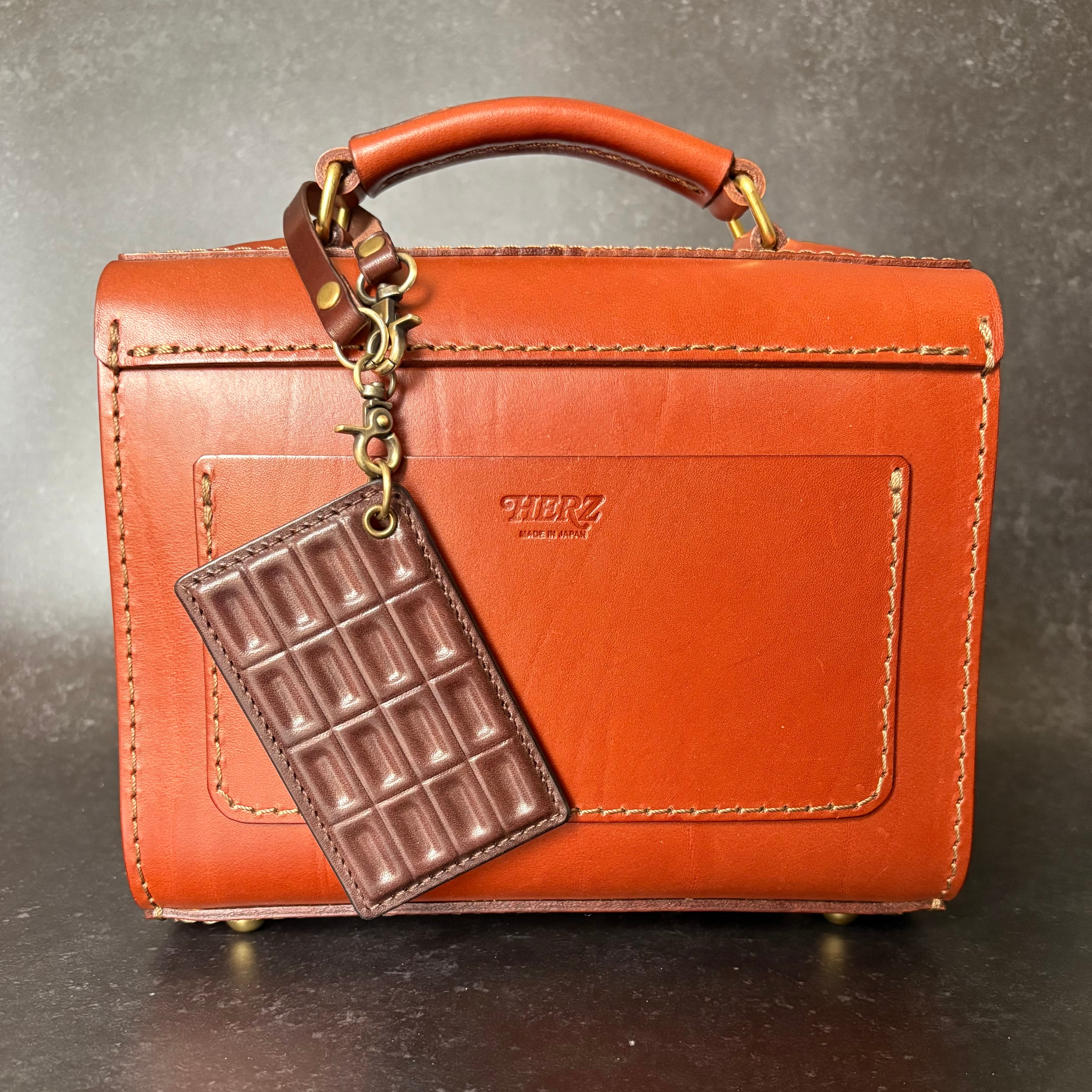 【名入れ可】本物みたいな板チョコパスケース / 手染め本革の立体成形・アンティーク仕上げ