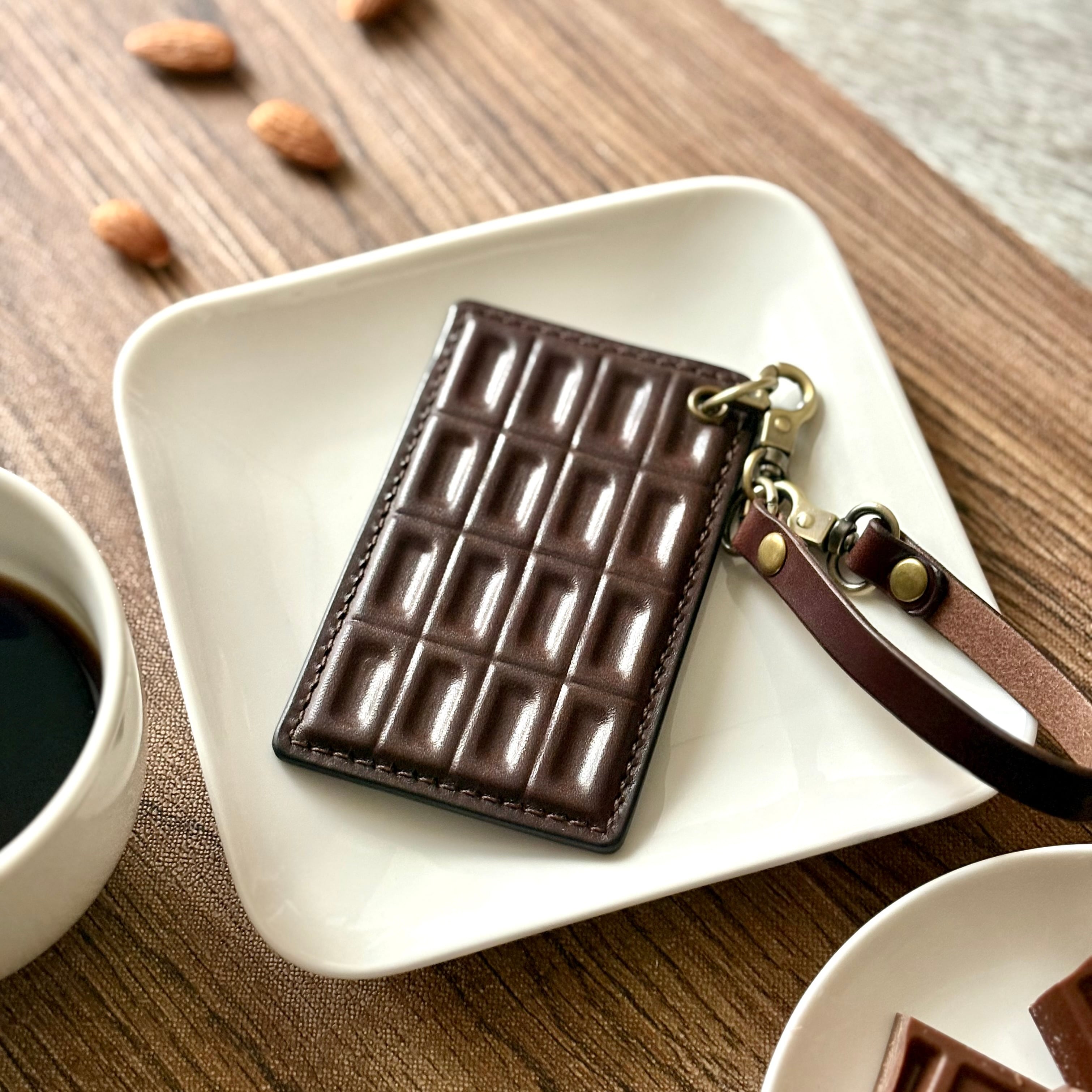 まるで本物の板チョコのような質感を再現した、本革製パスケースです。